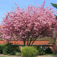 Сакура (вишня декоративная) Ошидори — розовоцветный густомахровый гибрид мелкопильчатой вишни, устойчивый к морозам и летней жаре. Самый длительно цветущий сорт декоративных вишен — первые цветки распускаются еще до окончательного схода снега, обильное цветение продолжается до начала июня. Ягоды-костянки непригодны в пищу из-за почти полного отсутствия мякоти. Не нуждается в сложном угоде и зимнем укрытии. Вырастает в высоту до 3 метров и может формироваться как в виде куста, так и в виде штамбового дерева.